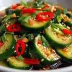 Spicy Asian Cucumber Salad is a refreshing, bold side dish that delivers crunch, heat, and tang in every bite. Cool cucumbers absorb a vibrant chili-garlic dressing, creating a balance of crisp texture and lively flavor. It is light, quick to prepare, and full of contrast.