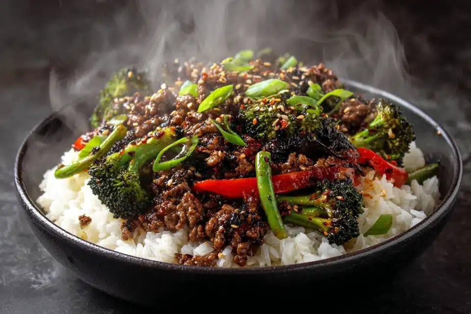 Spicy Ground Beef Stir-Fry Bowl with Garlic Veggies & Steamy Rice – Fast, Fiery, and Filling in 25 Minutes This spicy ground beef stir-fry bowl is a quick and fiery …
