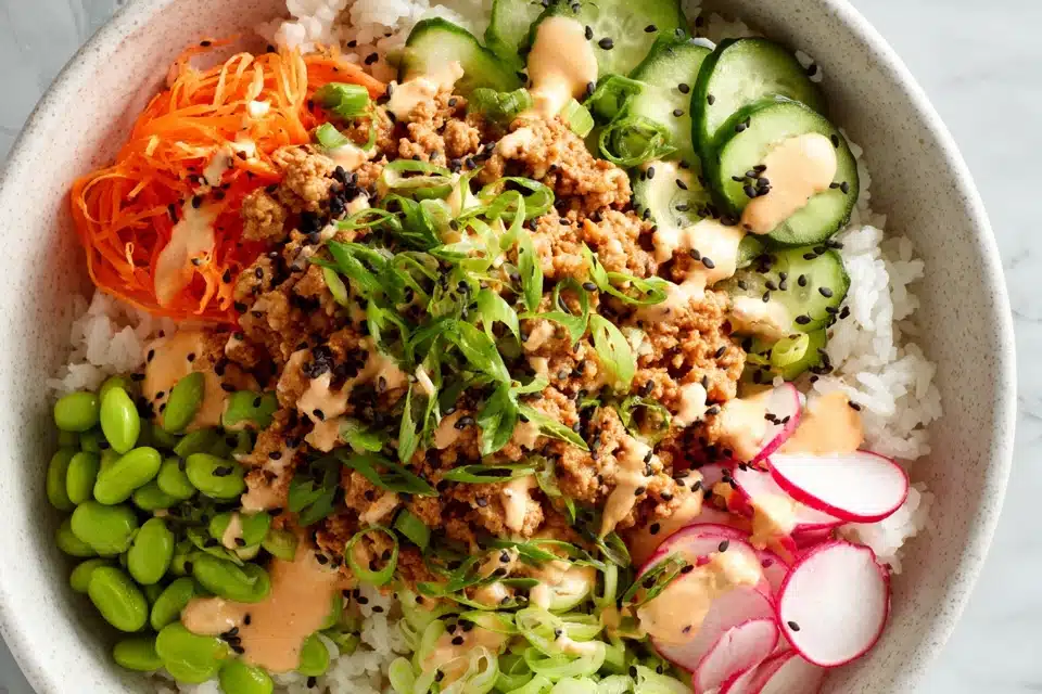 Ground Turkey Rice Bowls with Creamy Bang Bang Sauce