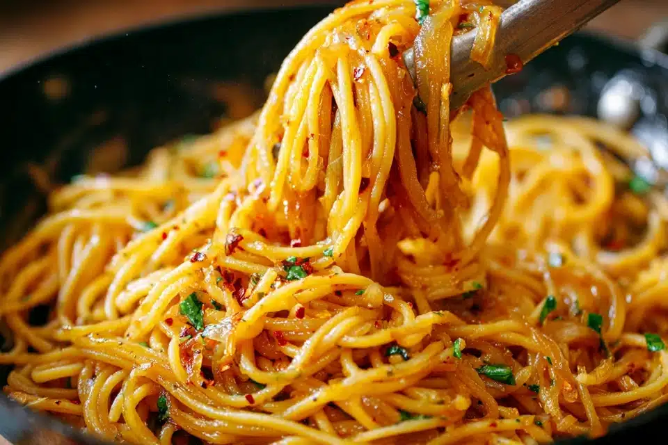 Plant-Based Comfort Dish: Caramelized Onion Spaghetti
