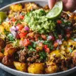 It’s a fun, customizable dinner that brings the feel of a taco night with a twist — no tortilla required. The roasted potatoes create a comforting base that soaks up all the taco flavor, while toppings like avocado, pico de gallo, and shredded cheese take it over the top.