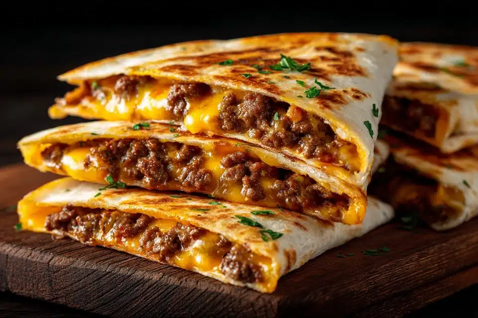 Originating from the American griddle-cooked smashburger, this version takes the classic and presses it into a crispy tortilla, locking in melty cheese and seasoned beef. It’s quick to prepare, satisfying, and wildly adaptable — ideal for weeknight dinners, game-day snacks, or mini-meal prep.
