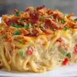 When Southern comfort meets bold, spicy flavor, you get this Irresistible Spicy Southern Chicken Spaghetti Casserole—a cheesy, creamy, baked pasta dish with a soulful kick. This isn’t your average weeknight pasta. It’s a casserole built for flavor lovers, packed with tender shredded chicken, melty cheddar, diced tomatoes, and a just-right blend of spice to warm you from the inside out.