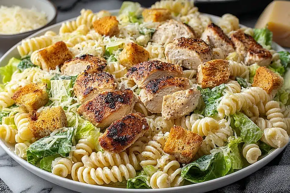 This recipe brings together familiar Caesar salad elements and transforms them into a more filling pasta-based dish. The result is a combination of textures and flavors that works well for lunches, family meals, or gatherings where a quick yet hearty option is needed.