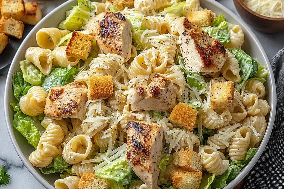 This recipe brings together familiar Caesar salad elements and transforms them into a more filling pasta-based dish. The result is a combination of textures and flavors that works well for lunches, family meals, or gatherings where a quick yet hearty option is needed.