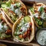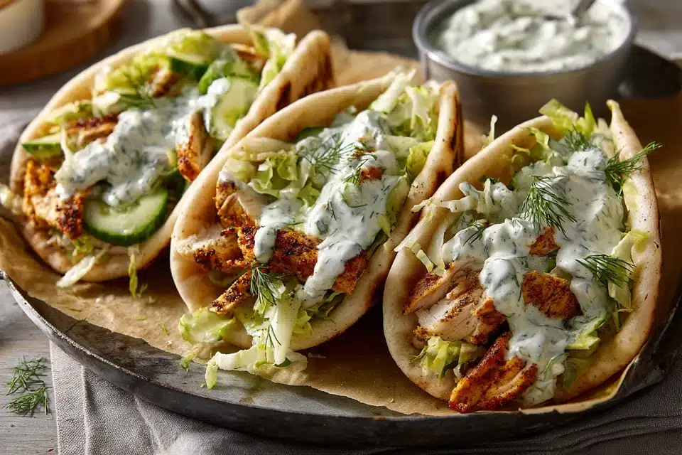 Inspired by Mediterranean and American ranch-style flavors, this recipe combines juicy roasted chicken seasoned with spices, roasted bell peppers and onions, and soft pita bread — all drizzled with a homemade herby ranch that pulls it together in every bite.