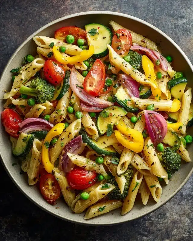 This version celebrates seasonal vegetables like zucchini, bell peppers, cherry tomatoes, and carrots, sautéed just enough to retain their color and bite. Tossed with al dente pasta and fresh herbs, it’s a wholesome vegetarian dinner that’s endlessly adaptable and perfect for Meatless Mondays, weeknights, or casual entertaining.
