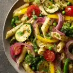 This version celebrates seasonal vegetables like zucchini, bell peppers, cherry tomatoes, and carrots, sautéed just enough to retain their color and bite. Tossed with al dente pasta and fresh herbs, it’s a wholesome vegetarian dinner that’s endlessly adaptable and perfect for Meatless Mondays, weeknights, or casual entertaining.