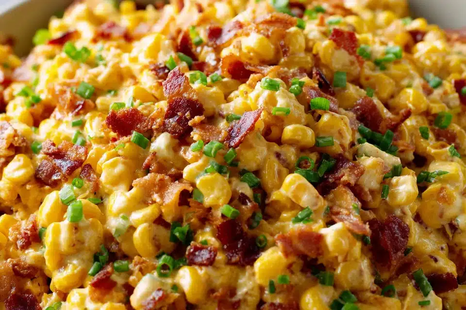 This dish is often served at gatherings, cookouts, and family meals. The combination of crisp bacon, tender corn kernels, and a creamy base creates contrast in both texture and taste. Each bite carries a mix of smoky, tangy, and lightly sweet notes.