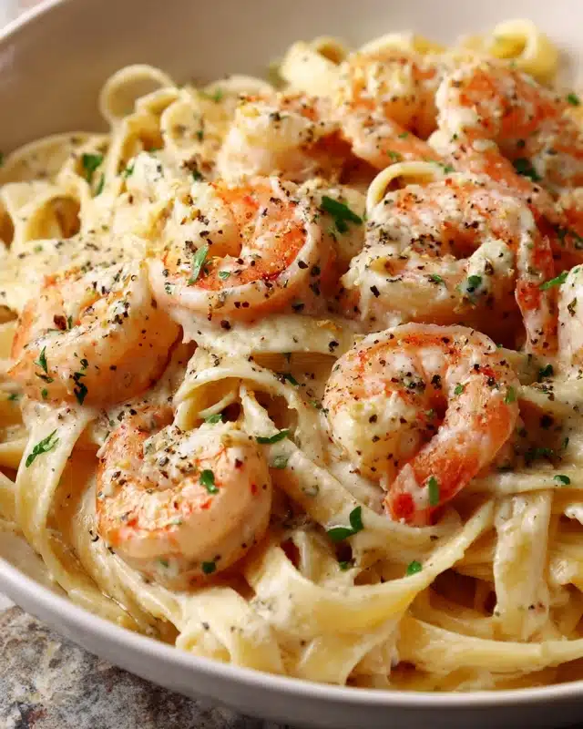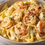 This creamy shrimp fettuccine pasta features juicy seared shrimp tossed with tender noodles and homemade Alfredo sauce. A luxurious 30-minute meal perfect for weeknights or date night.