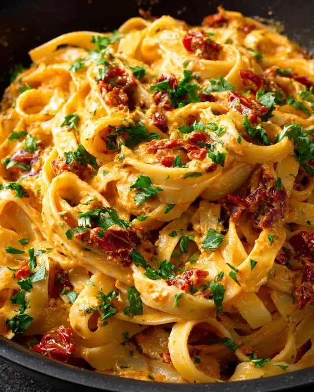 Looking for an indulgent, dairy-free meal that satisfies like classic comfort food? This Creamy Sun-Dried Tomato Vegan Pasta is a rich, velvety dish that’s perfect for date night or a cozy weeknight dinner. It’s completely plant-based, quick to prepare, and loved even by non-vegans. With its vibrant orange-hued sauce, tender fettuccine, and punchy sun-dried tomato flavor, this recipe proves that vegan dinners can be just as luxurious and satisfying.