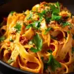 Looking for an indulgent, dairy-free meal that satisfies like classic comfort food? This Creamy Sun-Dried Tomato Vegan Pasta is a rich, velvety dish that’s perfect for date night or a cozy weeknight dinner. It’s completely plant-based, quick to prepare, and loved even by non-vegans. With its vibrant orange-hued sauce, tender fettuccine, and punchy sun-dried tomato flavor, this recipe proves that vegan dinners can be just as luxurious and satisfying.