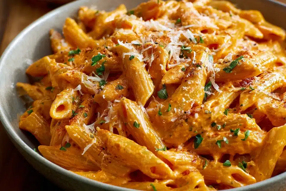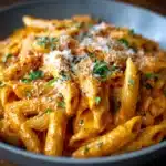 This super easy creamy tomato pasta is the kind of go-to recipe every home cook needs. It’s fast, comforting, and made with pantry staples in just 20 minutes — no chopping, no fuss. The sauce is rich and silky, combining crushed tomatoes and cream with garlic, Parmesan, and a pinch of spice to create a dish that tastes way more indulgent than it is.