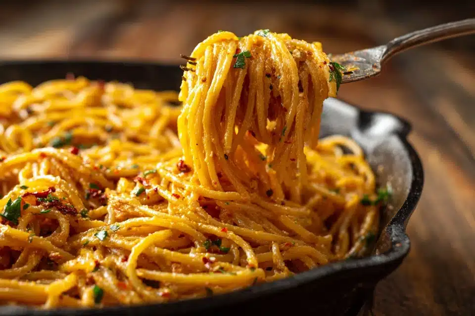A rich and creamy vegan pasta dish made with slow-cooked caramelized onions and dairy-free ingredients. Silky, flavorful, and comforting — without any cream.