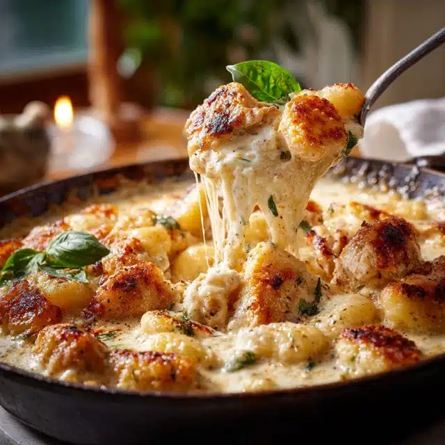 A creamy, cheesy one-pan meal featuring tender gnocchi, seared chicken, and homemade Alfredo sauce. A comforting 30-minute recipe perfect for weeknights.