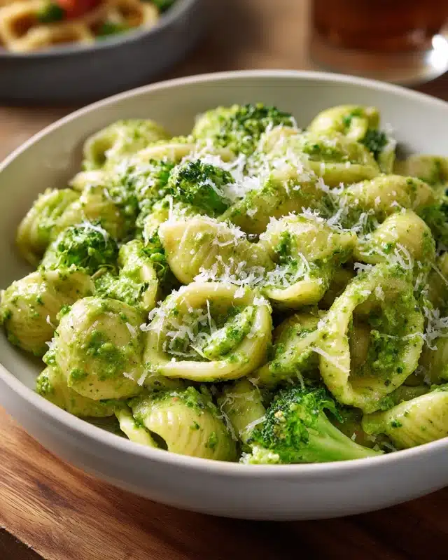 Broccoli pasta is inspired by Italian cucina povera—humble, resourceful dishes made with minimal ingredients and maximum flavor. In this version, broccoli is cooked until tender and blended into a garlicky sauce that clings beautifully to pasta. It’s light, lemony, and naturally creamy without any heavy dairy.