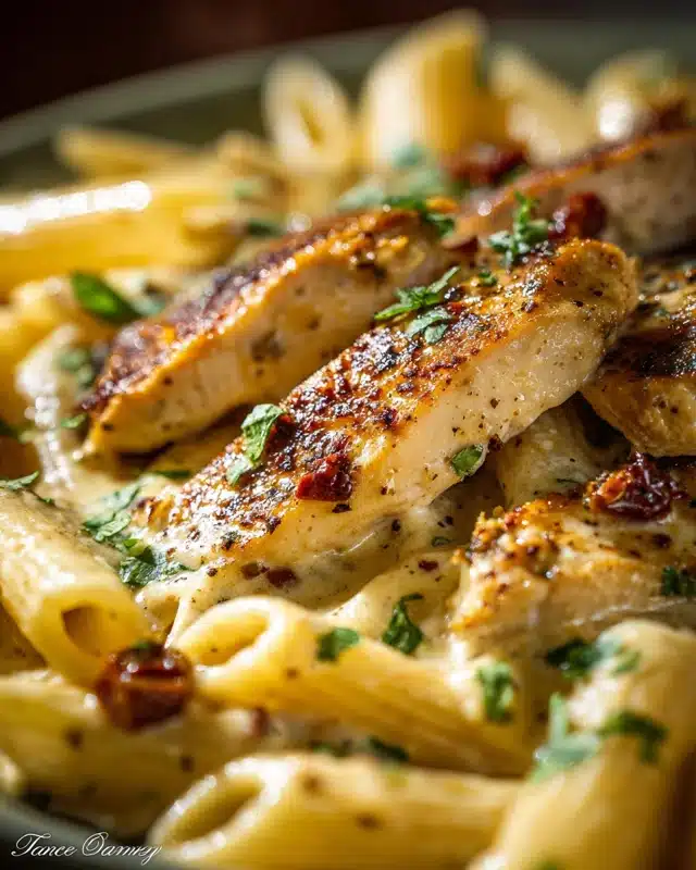 A creamy, dreamy pasta dish featuring garlic-seared chicken, sun-dried tomatoes, and a rich Parmesan sauce—all ready in about 30 minutes. This is the ultimate cozy dinner.