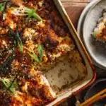 This easy spicy salmon sushi bake recipe brings the flavor and fun of sushi into a warm, comforting casserole-style dish that’s perfect for dinner. Imagine layers of seasoned sushi rice, spicy salmon mixed with creamy mayo and sriracha, all baked to golden perfection and topped with crunchy garnishes and sliced green onions. It’s everything you love about spicy salmon rolls—deconstructed and baked in a pan.