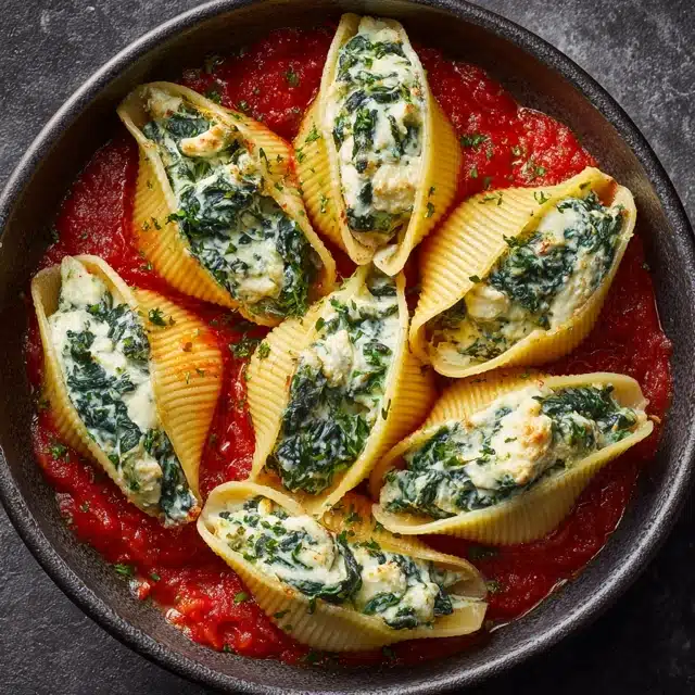 These Spinach and Ricotta Stuffed Shells are a comforting, veggie-packed dinner with creamy ricotta, tender spinach, and melty cheese baked in marinara. A family favorite that’s meatless, make-ahead, and full of flavor.