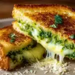 The Best Pesto Grilled Cheese is a timeless comfort dish transformed into a vibrant, flavor-packed sandwich. Crispy golden bread encases melted cheese and a generous slather of aromatic pesto, creating a harmonious blend of textures and tastes. Each bite offers the nutty, herby punch of basil pesto balanced by the creamy, gooey richness of melted cheese. This recipe brings a simple lunch or snack to a remarkable level of satisfaction without complicated techniques or ingredients. Perfect for busy weeknights, cozy weekend brunches, or a quick gourmet treat, this Best Pesto Grilled Cheese is sure to become a household favorite.