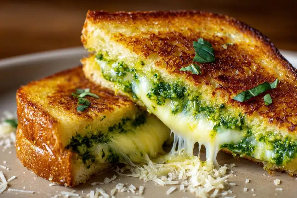 Together, these ingredients create a harmonious blend of crunch, meltiness, and aromatic punch. The balance of textures—crispy exterior, tender bread, gooey cheese, and creamy pesto—ensures every bite is rich, satisfying, and irresistibly flavorful.