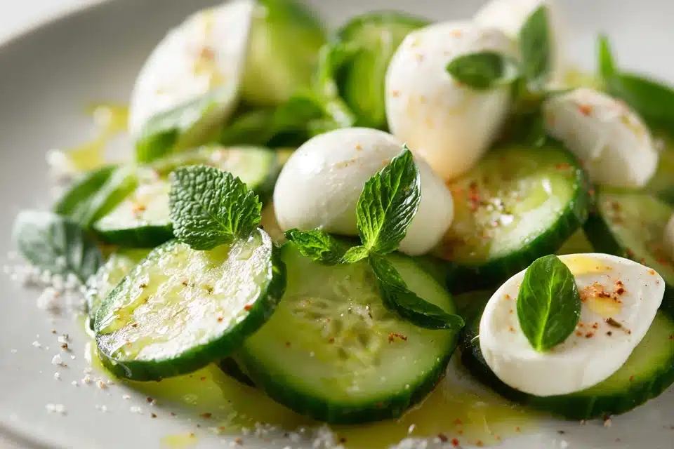 The magic of this salad lies in its simplicity. Thinly sliced cucumbers provide a refreshing crunch, while mozzarella adds creaminess. Fresh herbs such as basil or parsley bring an aromatic note, and a drizzle of olive oil or balsamic glaze ties everything together. This salad is ideal for anyone seeking a fast, healthy, and flavorful side dish with minimal effort.