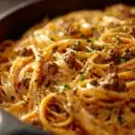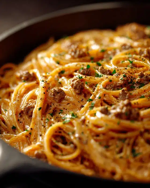 This creamy garlic butter beef pasta is a rich and hearty one-pot dinner made with ground beef, tender pasta, and a luscious cream sauce. Quick, satisfying, and perfect for busy nights.