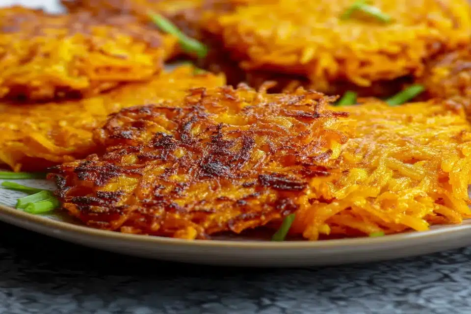 These hash browns are prepared by squeezing moisture from grated sweet potatoes, mixing them with simple seasonings, and cooking them in a skillet until the exterior becomes crisp and the inside stays tender. The natural sweetness of the potatoes pairs well with savory spices, creating a balanced bite.