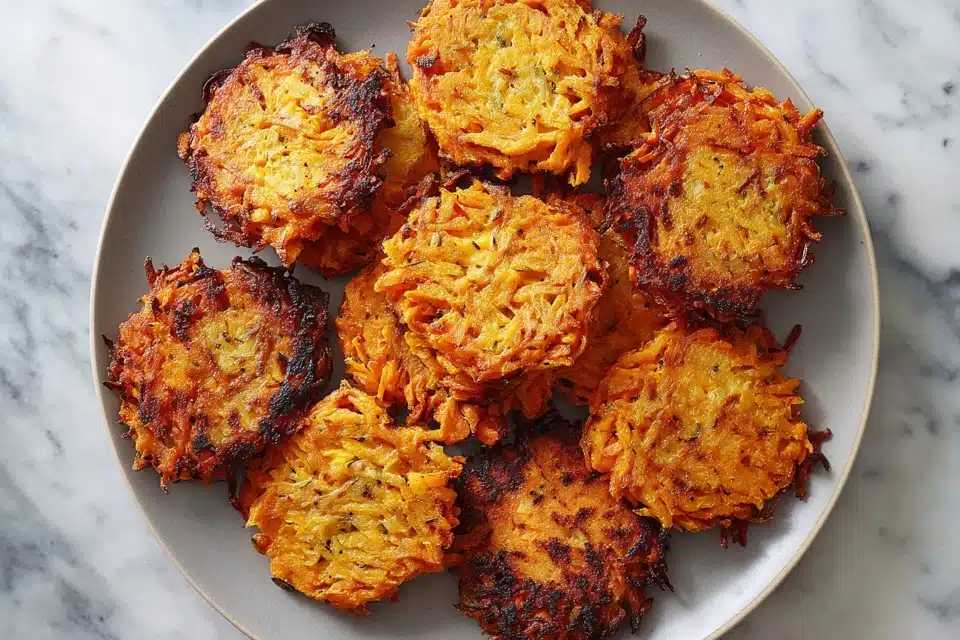 These hash browns are prepared by squeezing moisture from grated sweet potatoes, mixing them with simple seasonings, and cooking them in a skillet until the exterior becomes crisp and the inside stays tender. The natural sweetness of the potatoes pairs well with savory spices, creating a balanced bite.