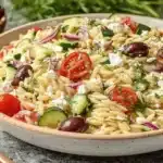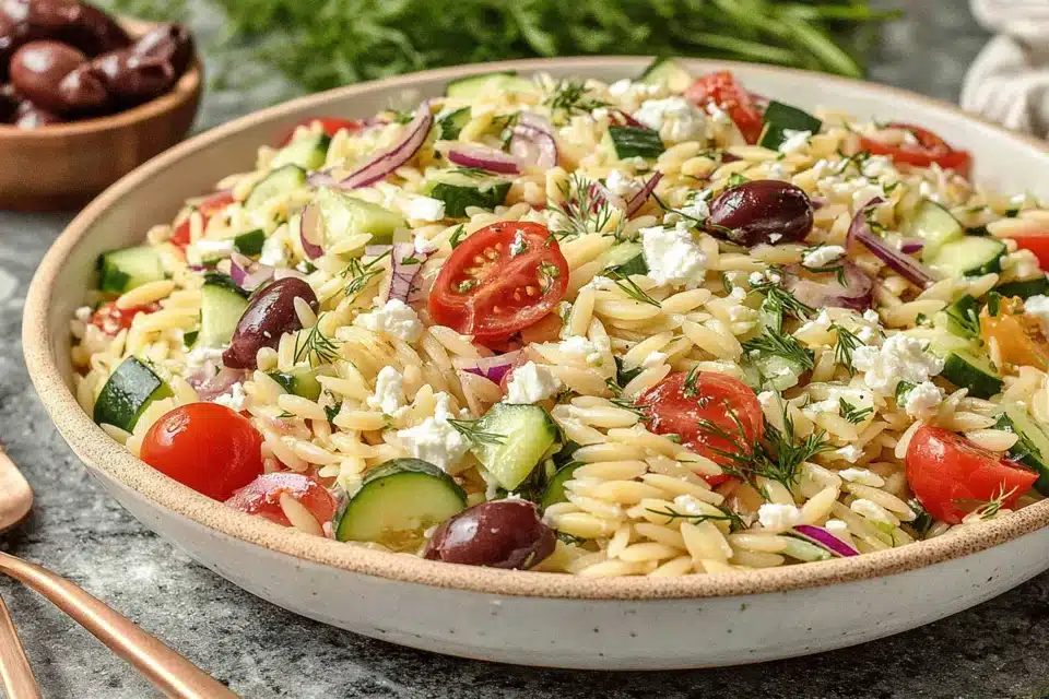 Greek Orzo Pasta Salad is a vibrant, Mediterranean-inspired dish that combines tender orzo pasta with crisp vegetables, briny olives, and creamy feta cheese. Light yet satisfying, it works well as a side dish or a standalone meal for lunch or dinner.