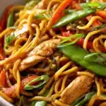 This easy Chicken Lo Mein recipe brings takeout-style flavor home in just 30 minutes. Juicy chicken, crisp veggies, and soft noodles are tossed in a rich, savory sauce for the ultimate quick dinner.