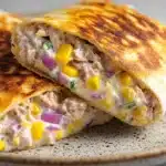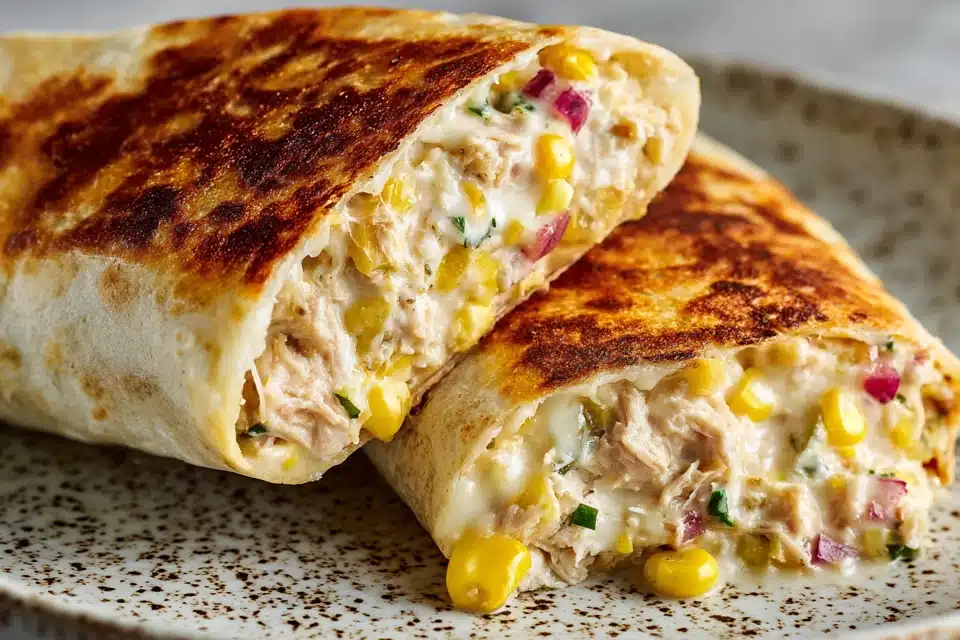 A warm, cheesy tuna melt wrapped in a golden tortilla. Quick, high-protein, and perfect for lunch, dinner, or meal prep.