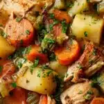 The result is a bowl filled with tender pieces of chicken, soft potatoes, and flavorful broth that soaks into every ingredient. It is the type of meal that brings warmth and comfort while remaining simple and dependable for regular family dinners.