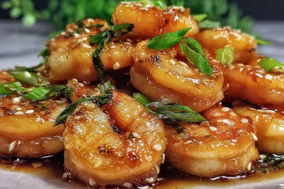 Serve immediately while warm. The shrimp should be tender, juicy, and coated in a glossy honey garlic glaze that clings to every bite.