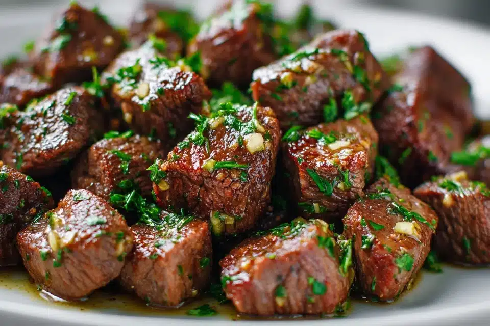 PrintHigh Protein Slow Cooker Beef Bites with Garlic Butter for Cozy Dinners