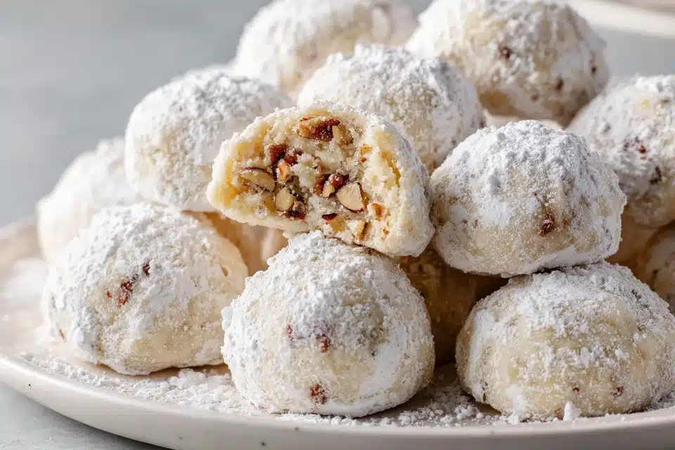 Powdered sugar is used both in the dough and as a coating, giving these cookies their signature “snowball” appearance. Brown sugar can be added in small amounts to the dough for additional moisture and a subtle caramel note, but pure white powdered sugar keeps the texture soft and delicate.
