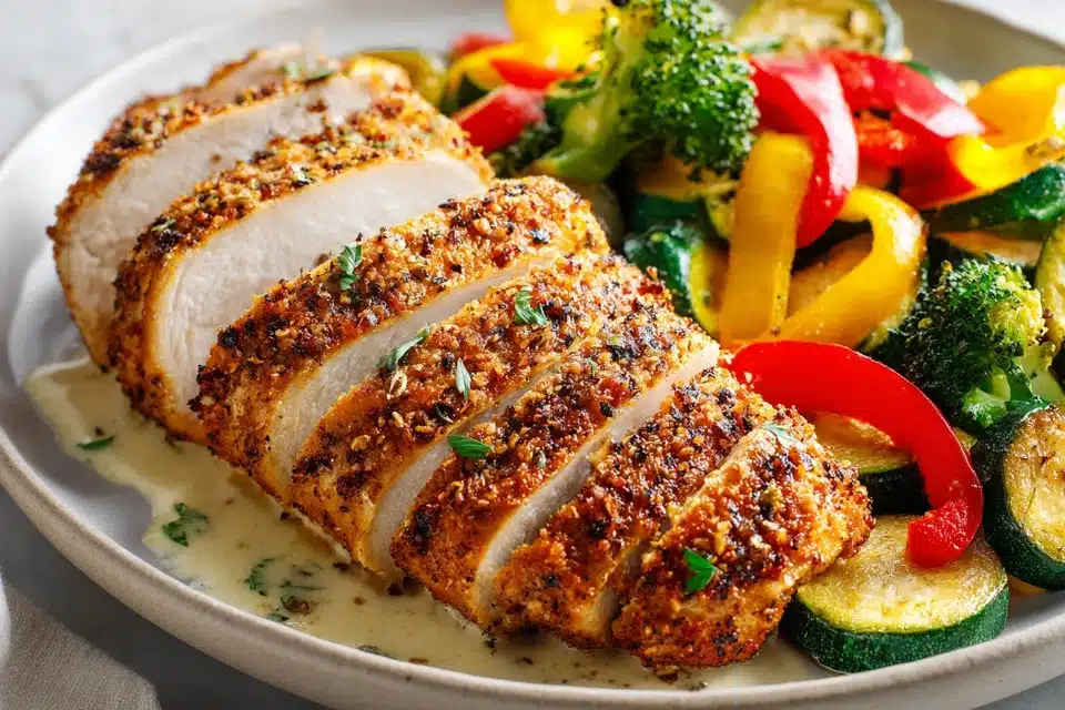 With bold seasoning, minimal oil, and quick cooking time, this dish delivers flavor and nutrition in every bite. The vegetables roast alongside the chicken, soaking up the savory juices and caramelizing at the edges. It’s high in protein, naturally gluten-free, and completely customizable based on what’s in your fridge.