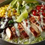 This Quick & Easy Low-Calorie Chicken Burrito Bowl is everything you love about your favorite burrito joint—zesty chicken, vibrant veggies, and hearty toppings—served up in a lighter, smarter way. Perfectly seasoned grilled chicken is layered over cauliflower rice or brown rice, then topped with colorful, crisp vegetables, a dollop of salsa, and a touch of creamy yogurt or avocado.
