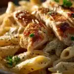 A creamy, savory one-pan Garlic Parmesan Chicken Pasta that’s rich, easy to make, and perfect for weeknights. Made with tender chicken, a garlicky parmesan cream sauce, and pasta all in one skillet.