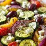 A colorful medley of Mediterranean vegetables roasted with garlic, olive oil, lemon, and herbs. One pan, no fuss — the perfect healthy side or main dish.