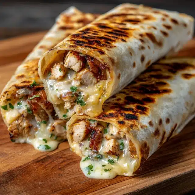 There’s something magical about combining garlic butter, tender chicken, and bubbling cheese inside a crispy wrap. These wraps have it all:
