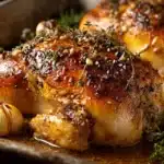 A rustic French-inspired chicken dish roasted with whole garlic cloves, fresh herbs, and olive oil. Crispy skin, tender meat, and garlicky pan juices in one easy pan.