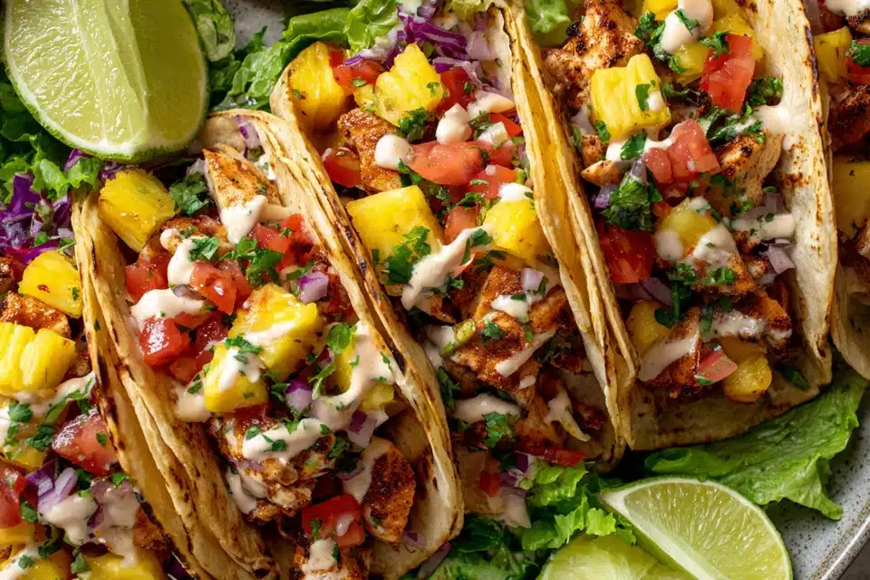Pineapple Chicken Tacos combine juicy chicken, sweet pineapple, and vibrant toppings into a fresh and satisfying meal. The balance of savory chicken and naturally sweet pineapple creates a taco filling that feels both bright and comforting.