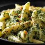 This Creamy and Cheesy Spinach Pasta, also known as Palak Pasta, is a vibrant, nutritious, and comforting fusion of Indian flavors and classic Italian comfort. It blends fresh spinach (palak) into a smooth, herbaceous sauce that’s rich with garlic, light cream, and cheese—coating every bite of pasta in bright green goodness.