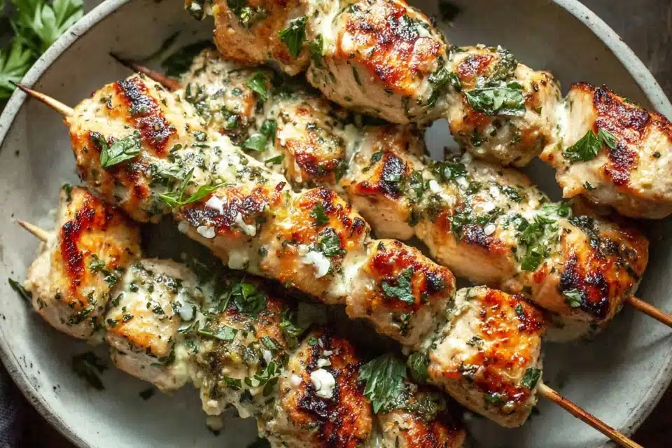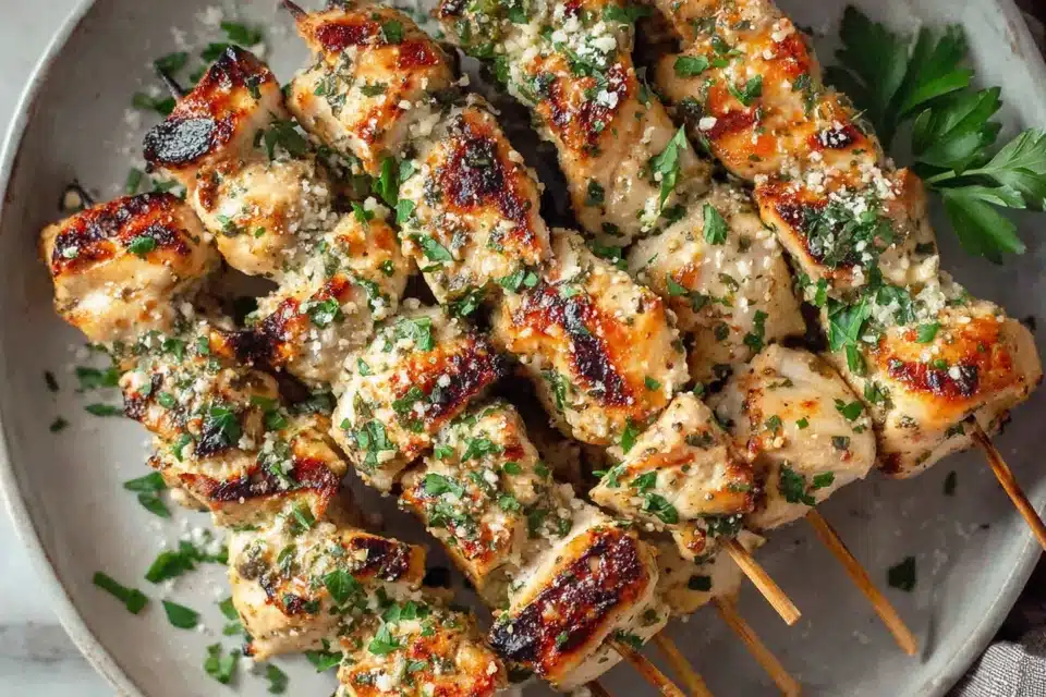 Grilled Ranch Garlic Parmesan Chicken Skewers deliver juicy, charred chicken coated in a creamy, savory blend of ranch seasoning, garlic, and Parmesan cheese. Each skewer is packed with bold flavor, combining smoky grill notes with a rich, cheesy finish that clings to every bite. The balance of herbs, garlic, and tangy ranch creates a dish that feels hearty yet approachable for any home cook.