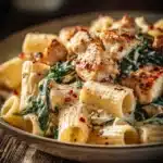 This Creamy Ricotta Chicken Pasta features tender chicken and al dente pasta tossed in a rich, garlic-infused ricotta sauce. It’s quick, comforting, and ideal for both casual dinners and special occasions.