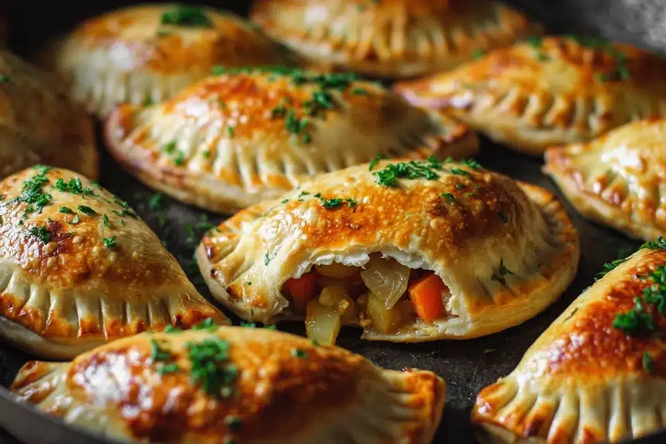 Flaky hand-held pastries filled with seasoned potatoes, carrots, onions, and herbs, baked until golden and crisp.