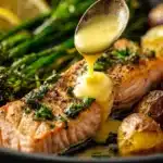 This Sheet Pan Baked Salmon with Lemon Sauce is the perfect solution for a weeknight dinner that feels restaurant-worthy but requires almost no cleanup. The salmon turns out perfectly tender and flaky, with crispy edges and a bright, buttery lemon garlic sauce that soaks into every bite.