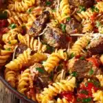 This dish brings together bold flavors and meaty richness, using everyday ingredients that cook quickly but taste like they’ve been simmering all day. It’s a clever way to stretch a modest amount of steak into a filling family meal, making it budget-friendly without sacrificing taste.