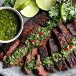 Skirt Steak Marinade with Chimichurri is grilled beef coated in lime garlic marinade and topped with fresh herb sauce for a bold and fresh meal.